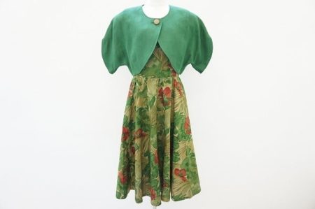 赤やグリーンの南国っぽい色合いで大人っぽく仕上げた花柄が印象的なワンピースは一枚で着ても存在感抜群です。