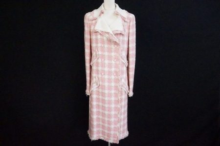 上質かつ可愛らしいピンクチェックツイードが美しいコートです。