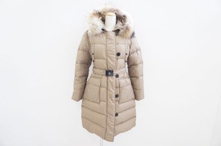 こちらは、淡いベージュカラーが上品なロングダウンコート。