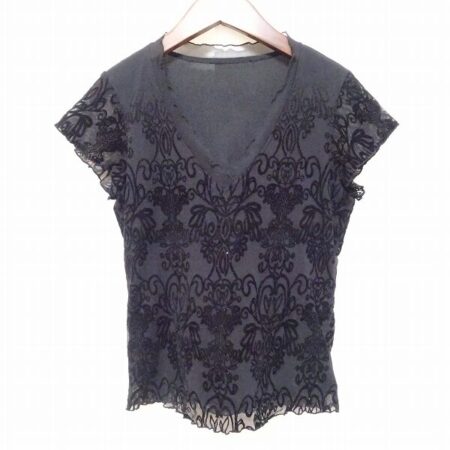 当店の常連様よりシズカコムロ 4298のカットソーを買取しました。出張買取です。黒のクールな雰囲気がありつつも刺繍やラメがほどよい華やかさを出してくれます。スッキリ綺麗に決めていただきたい際に使えるアイテムです。