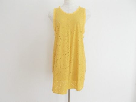 春夏に着たくなるような元気なイエローカラーのノースリーブトップス、季節感を上げてくれますね。