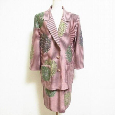 楽しくも品よく着られる斉藤都世子のセットアップ。出張買取ご利用のお客様より買取しました。堅苦しいイメージもあるセットアップですが、楽しく着られそうです。雰囲気、顔色ともに明るく仕上げてくれること間違いなし。