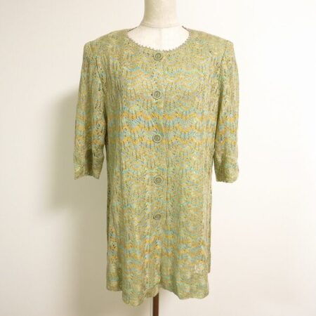 ふわっとした印象が強い斉藤都世子のカーディガン。出張買取ご利用のお客様より買取しました。優しい雰囲気を出してくれる色合いがポイント。柄も強すぎることなく柔らかさを演出してくれます。首元もUネックでたおやかさをアップ。