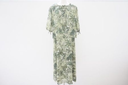 ドローストリングのデザインが程よくアクセントにもなっており、トレンドを選ばないリーフ柄が可愛らしいワンピースとなっております。