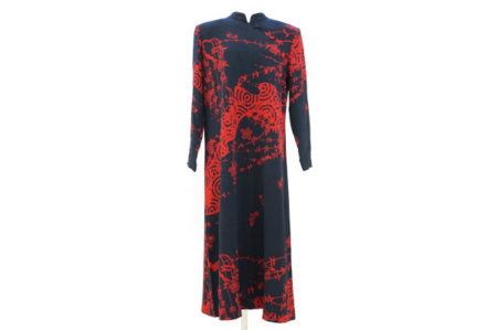 詩仙堂自慢の丁寧な手染めによってできる細かな柄が印象的で、チャイナドレスのような妖艶な雰囲気を醸しだす独自性あふれるデザイン。