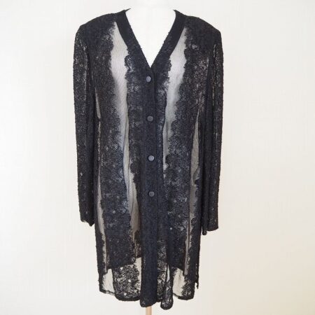 伊太利屋のカーディガンを買取しました。ご利用方法は出張買取です。華のある感じと女性の色っぽさは忘れていないのが嬉しい1着。シースルー素材で軽さがあるので気合を入れ過ぎずに着ていただけるのも嬉しいポイントかと思います。