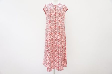 パキッとした赤に白の花柄が浮かび上がるような、着映え感抜群のワンピース。