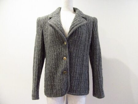 モヘヤというカジュアルになりがちな素材を使用しながらどこか色っぽさが健在のジャケット。十仁プラザのアイテムを出張買取にて買取しました。きっちりした雰囲気があり綺麗さや真面目さも存分に発揮できるアイテムです。