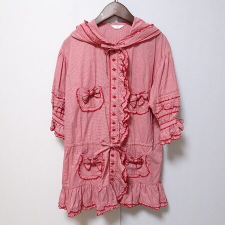 人気の高いピンクハウスのブラウスを買取しました。赤のギンガムチェックではありますが細かいのでカジュアル過ぎません。フリルやリボンも適度に馴染んでいるため丁度いい可愛いが作れます。